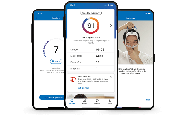 Track your sleep therapy success with myAir, an exclusive app available to Resmed AirSense™ and AirCurve™ users.