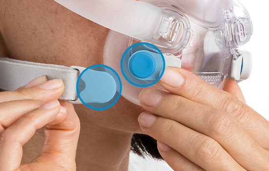 Resmed masks with magnets have magnetic clips to facilitate a simple and easy way for patients to attach and detach the headgear to the mask frame.