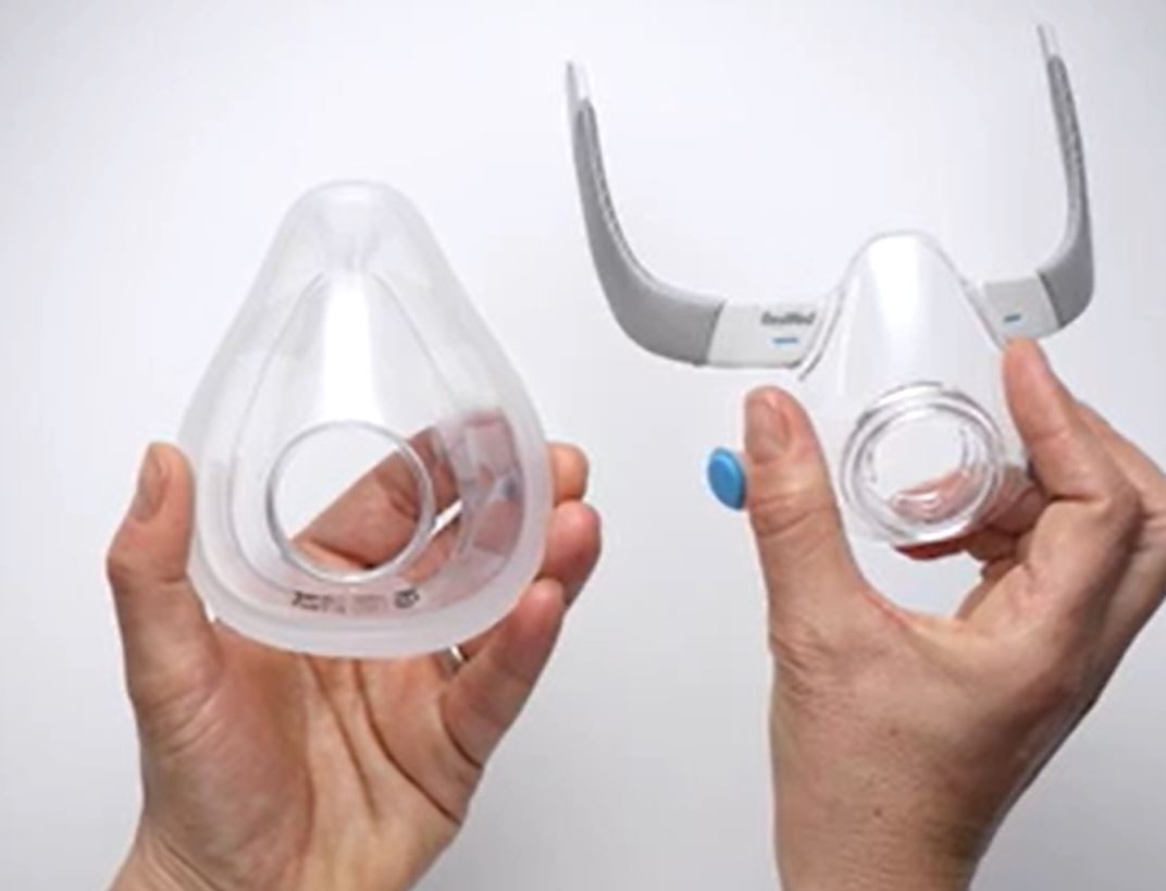 The mask includes comfort features such as an adaptive silicone cushion, which is intended to provide a secure and comfortable seal for your therapy needs regardless of your face shape or size.