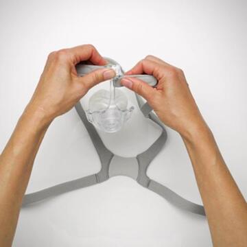 A nasal mask with flexible forehead support for extra stability, the AirFit N20 Classic is designed to maintain a comfortable, stable seal throughout the night. Even when you move in your sleep, the auto-adjusting mask tension, an InfinitySeal silicone cushion and soft plush headgear ensure that the mask stays in place.