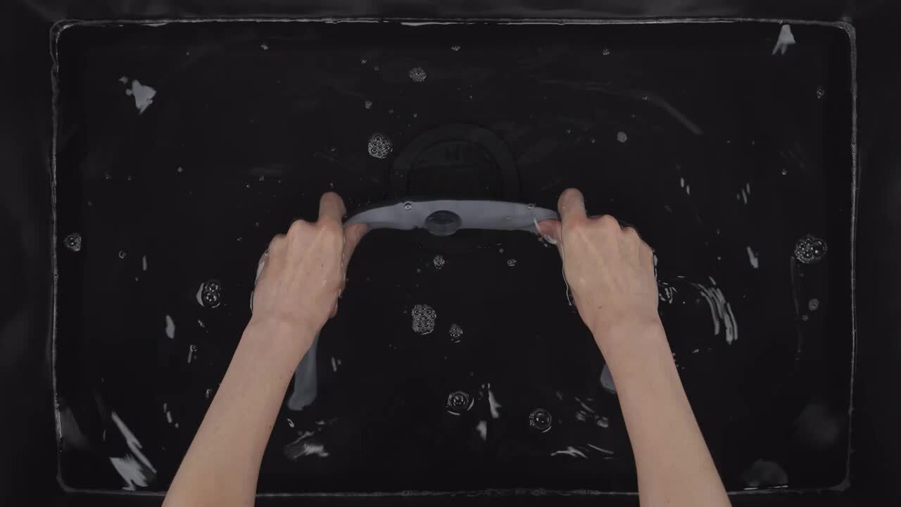 - Thoroughly rinse the components under running water. If the sleeve on the frame becomes twisted, it can be repositioned when wet.