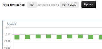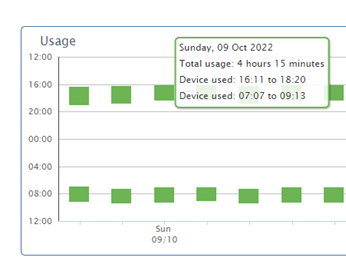 Detailed daily usage information can be viewed by scrolling through the usage chart.
