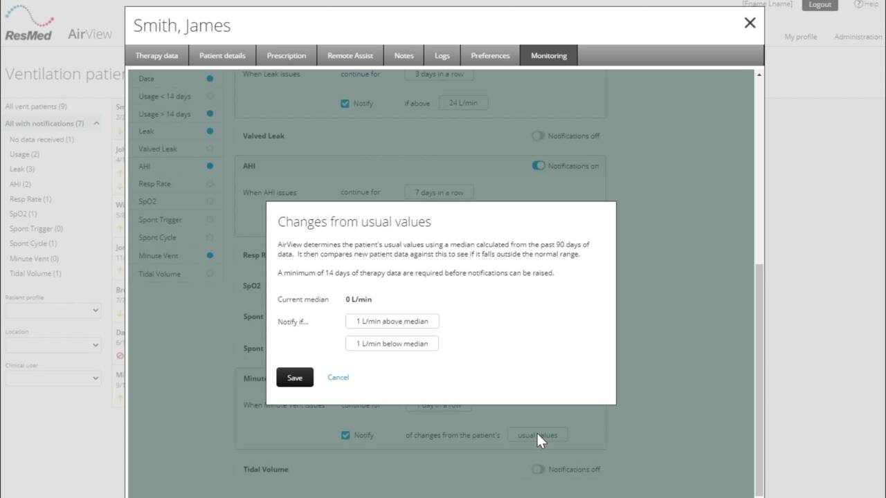 *The interactive reporting feature is included in Advanced and Expert packages. It is available on ResMed ventilation devices only.