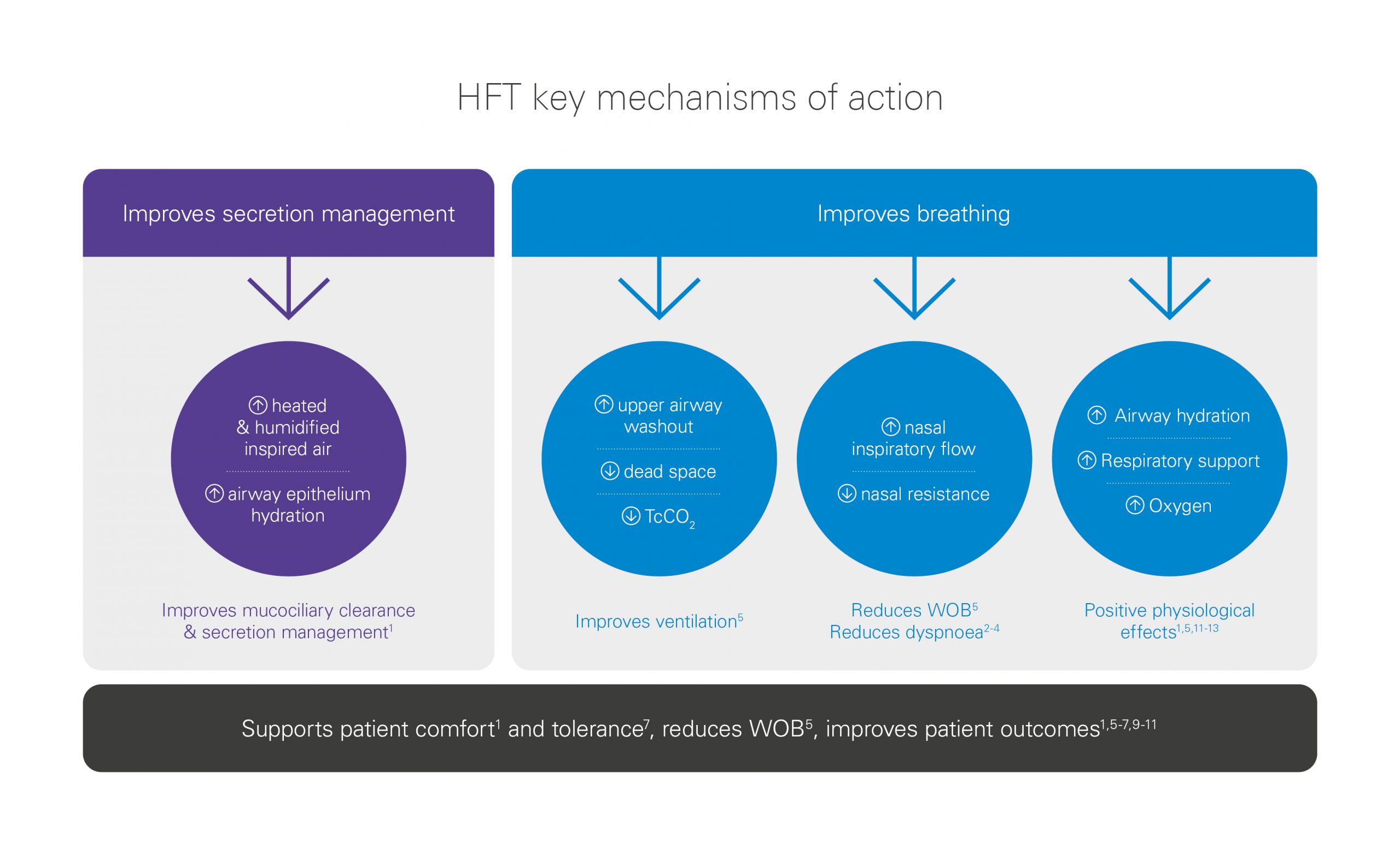 Patients with COPD receiving long-term HFT at home have shown preserved or improved QoL scores vs those receiving usual care, including LTOT alone.6,7 HFT also seems to be well tolerated by patients7 and supports patient comfort by improving mucociliary clearance and secretion management1 and reducing dyspnoea during high intensity exercise. 2-4