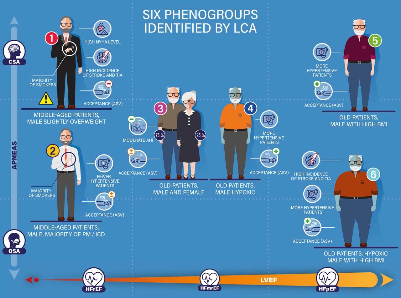These registries highlighted the importance of addressing symptomatic individuals with SDB, and demonstrated that the effect of ASV can vary significantly depending on the phenotype of patients. One size does not fit all in the CSA population: careful patient selection and phenotyping should be performed to ensure ASV is prescribed to patients most likely to benefit from therapy.