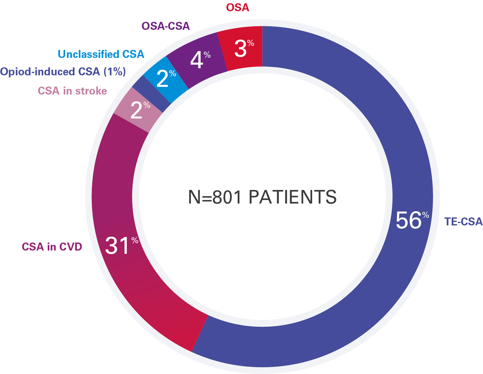 The findings from the READ-ASV study8 reveal that ASV therapy is primarily used in clinical practice for patients with treatment-emergent central sleep apnoea (TE-CSA) and CSA with cardiovascular disease.