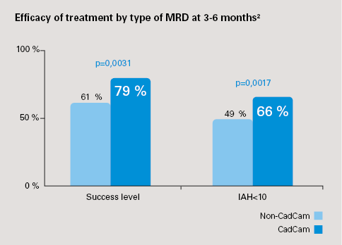 • Complete response (AHI<10): CAD/CAM Narval CC: 66% (CI 95%: 61-72%) vs non-CAD/CAM: 49% (CI 95%: 36–62%); p=0.017